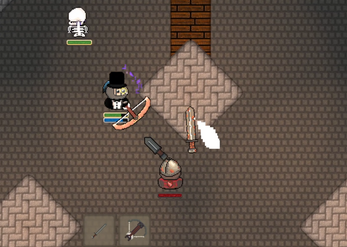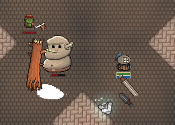 It would be really fun to carve through big crowds of early enemies later in the game, but right now your weapon gets caught up and you get poked to death. We're thinking about permanent strength upgrades that you can stack up and then bash weaker enemies around like the troll does